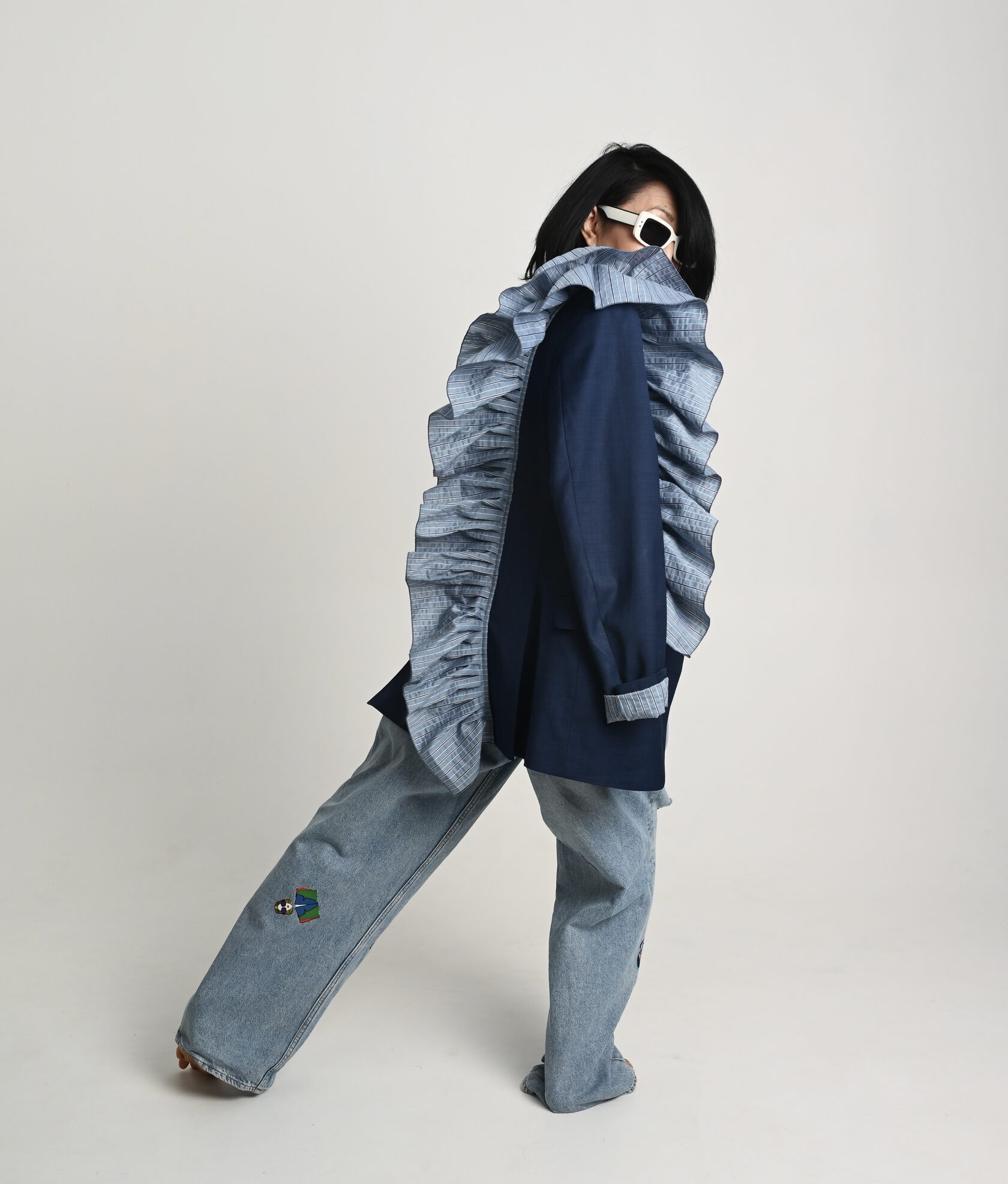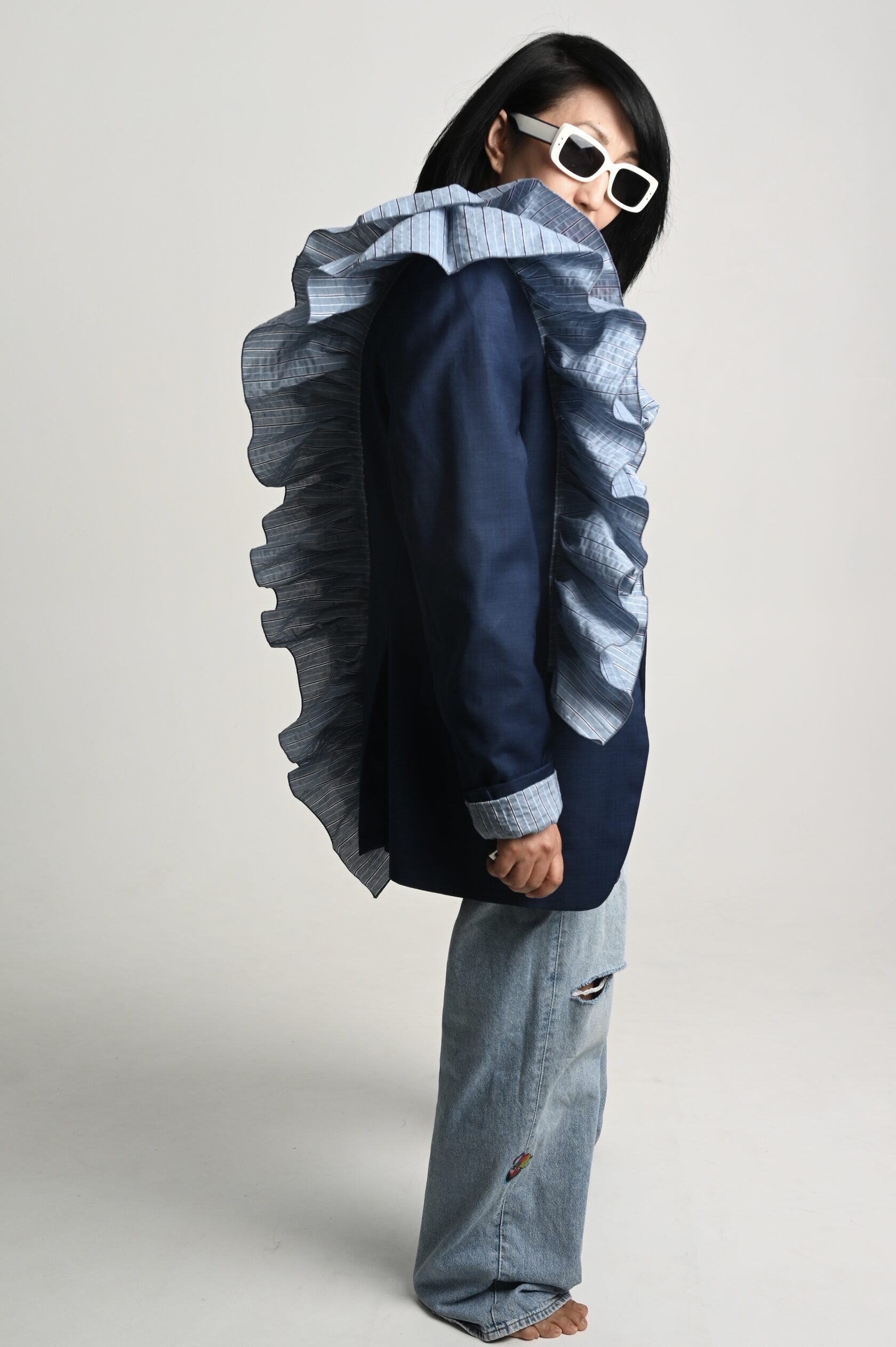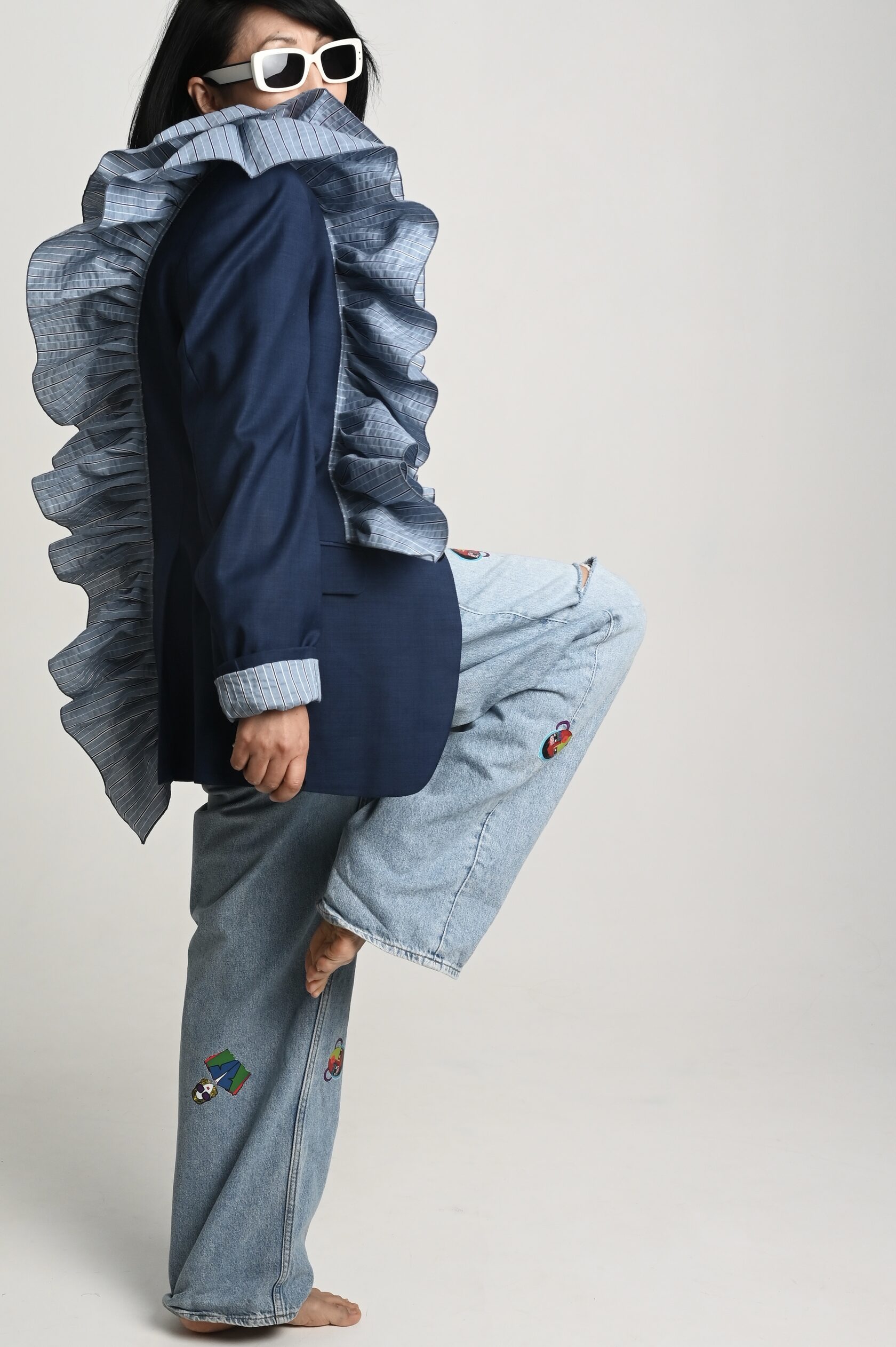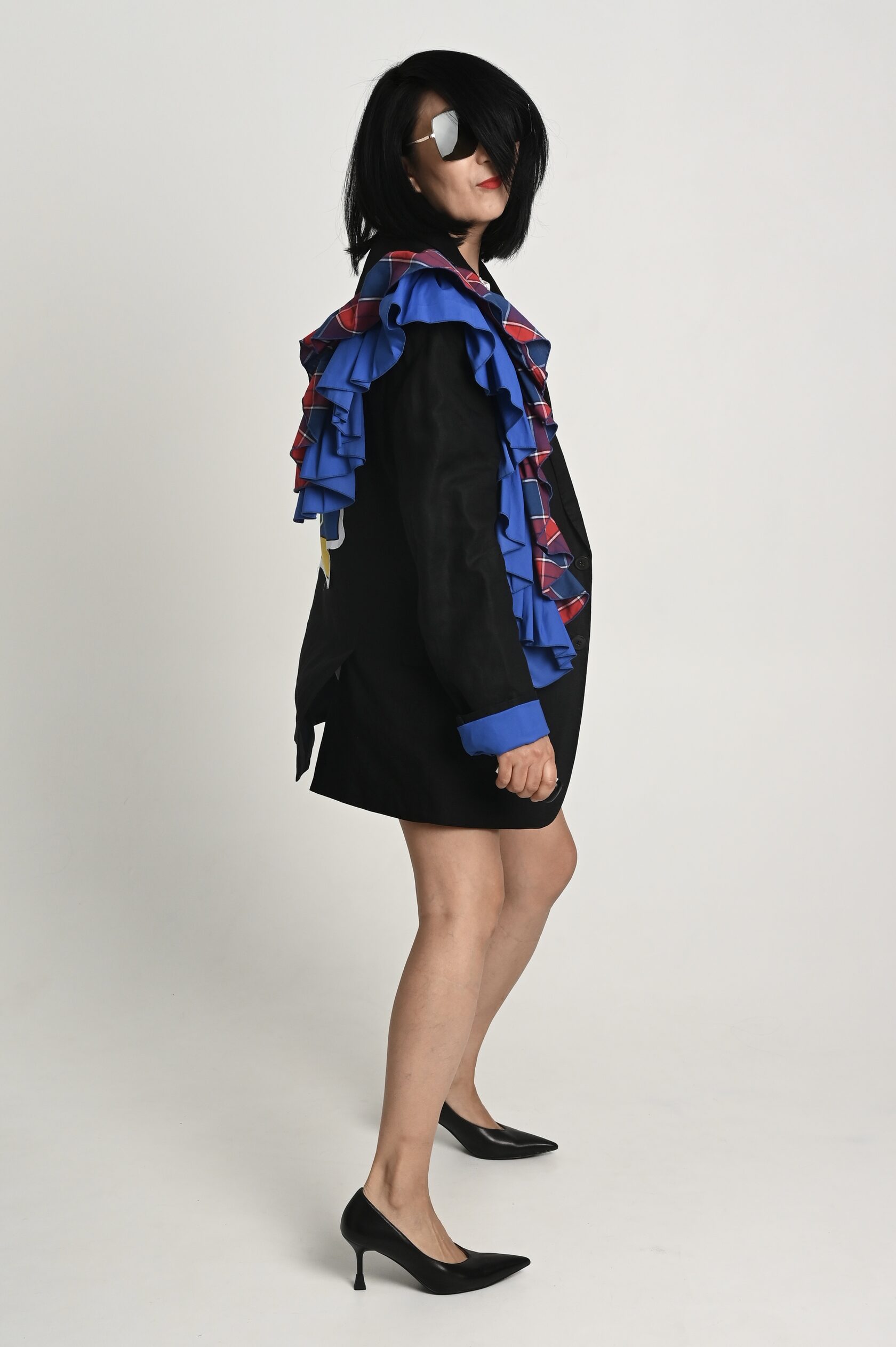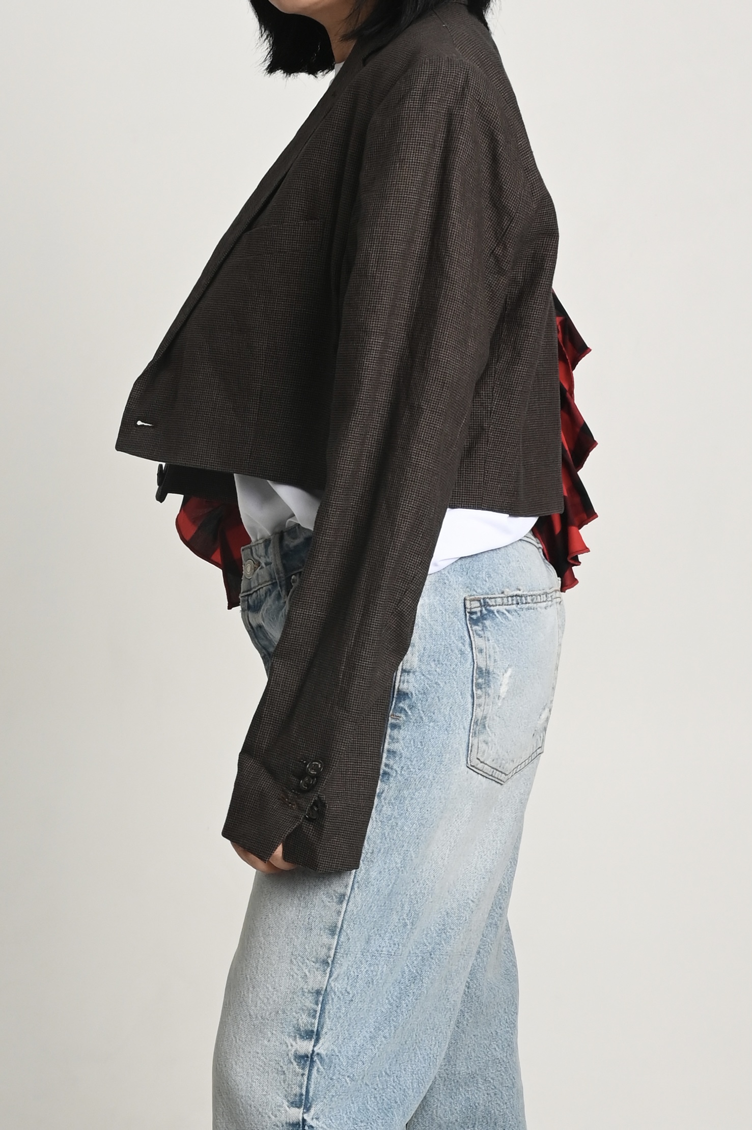 Накинула пиджак на свои хрупкие плечи, поправила волан, оглянулась, окинула себя взглядом.
