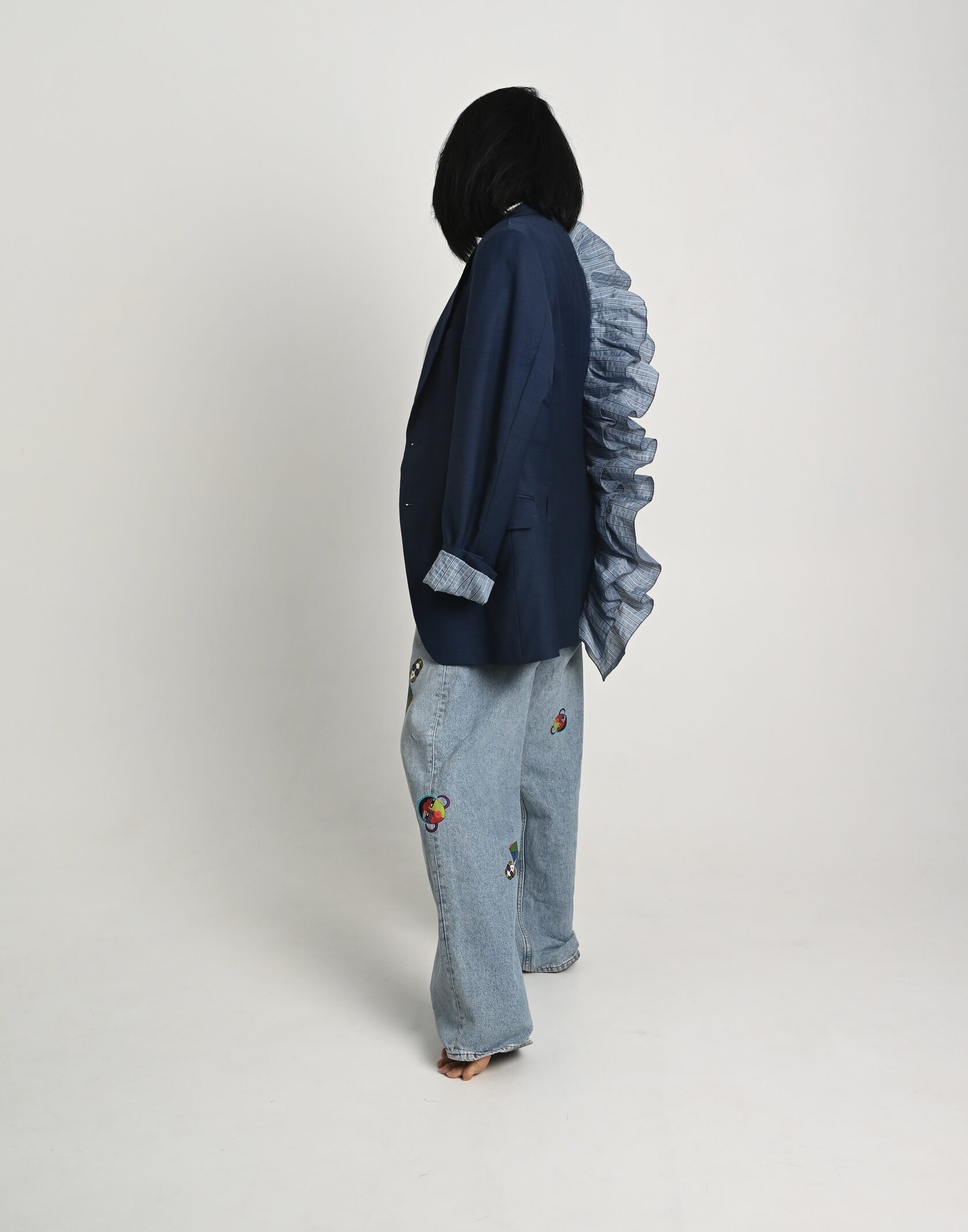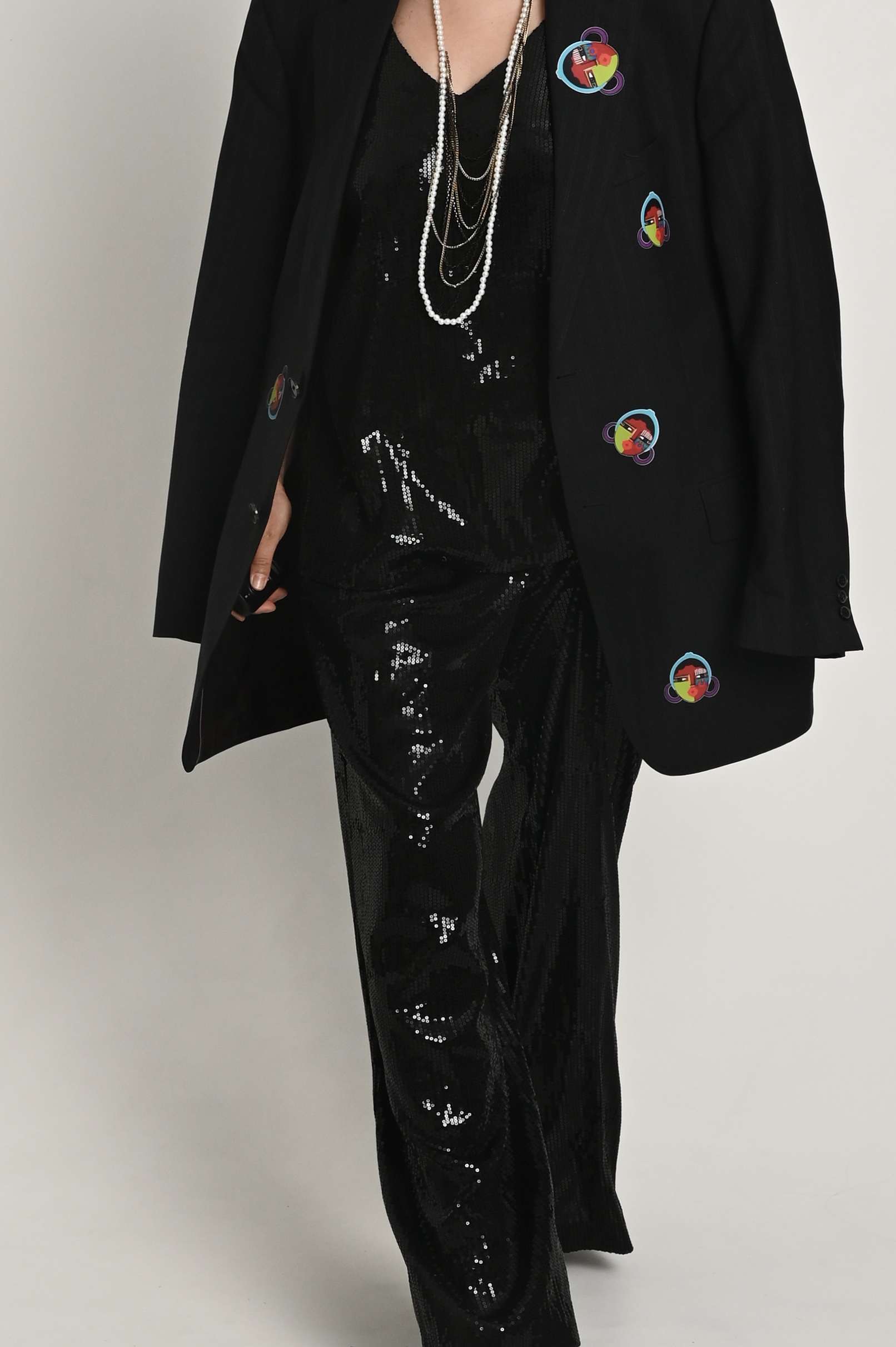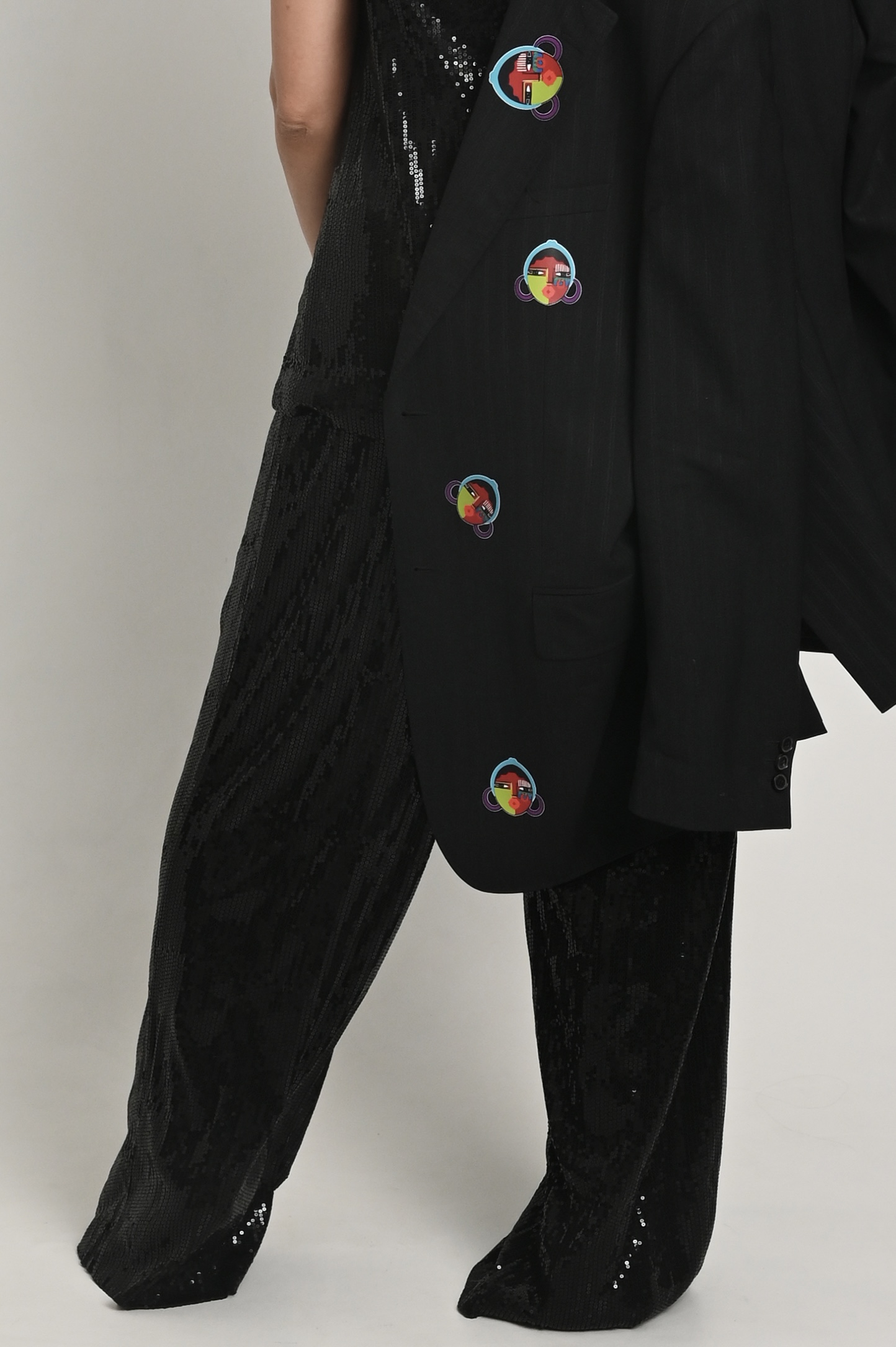 Пиджак проживает вторую жизнь, крой мужской, именно он придаёт тот объем и стиль, ты можешь сочетать его как с элегантным платьем, накинув его в прохладный день, и с любимыми рваными джинсами, надев футболку или топ. Когда ты захочешь насладится чашечкой ароматного кофе, и чтобы было удобно, подвернёшь рукав, ты насладишься безупречной подкладкой и возможно, так и оставишь - тебе понравится эта лёгкая небрежность и простота. Аппликация ! Она создаёт магический обряд, поговаривают автор вкладывает свой смысл и символику, в общем надо брать!