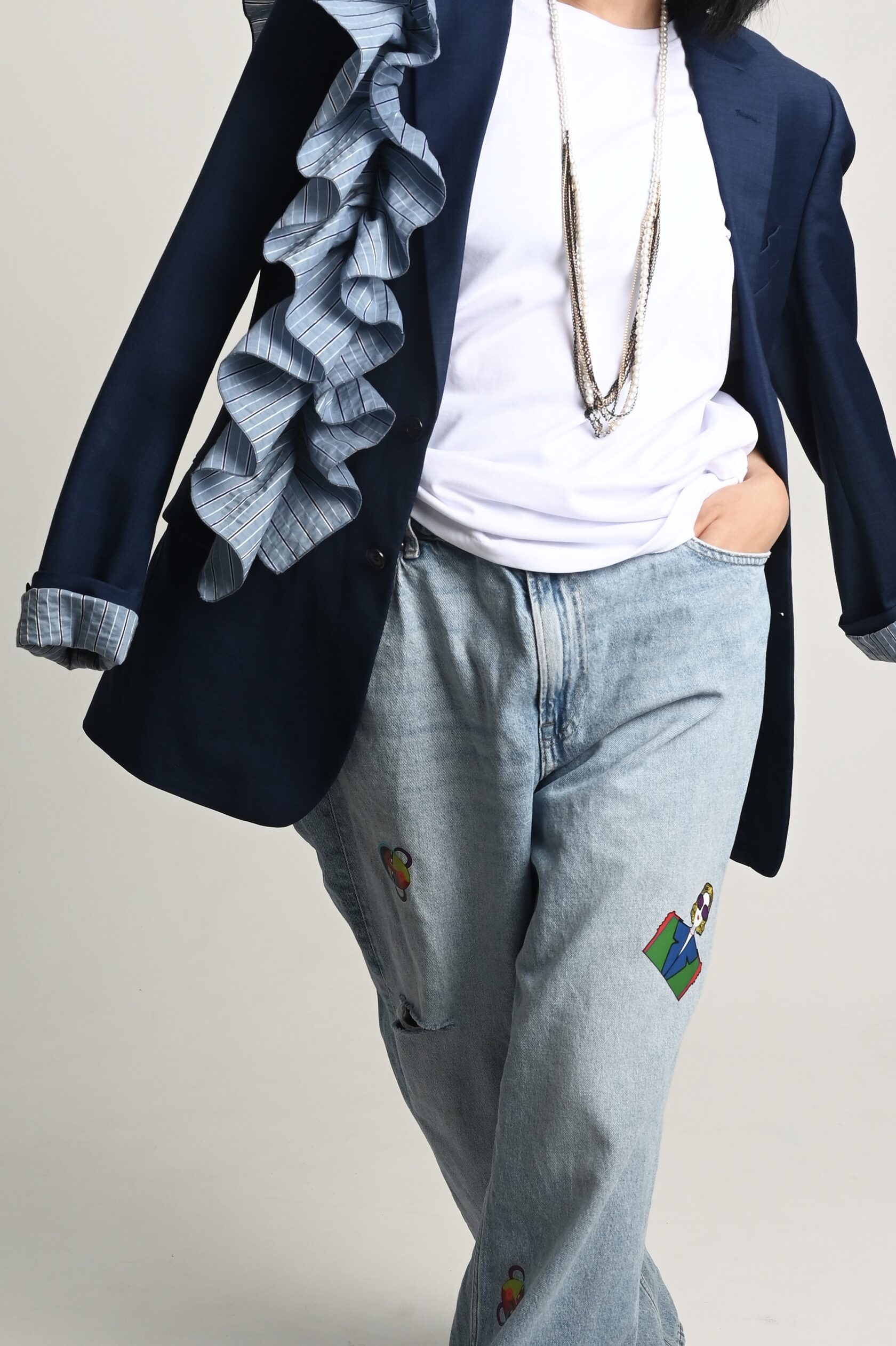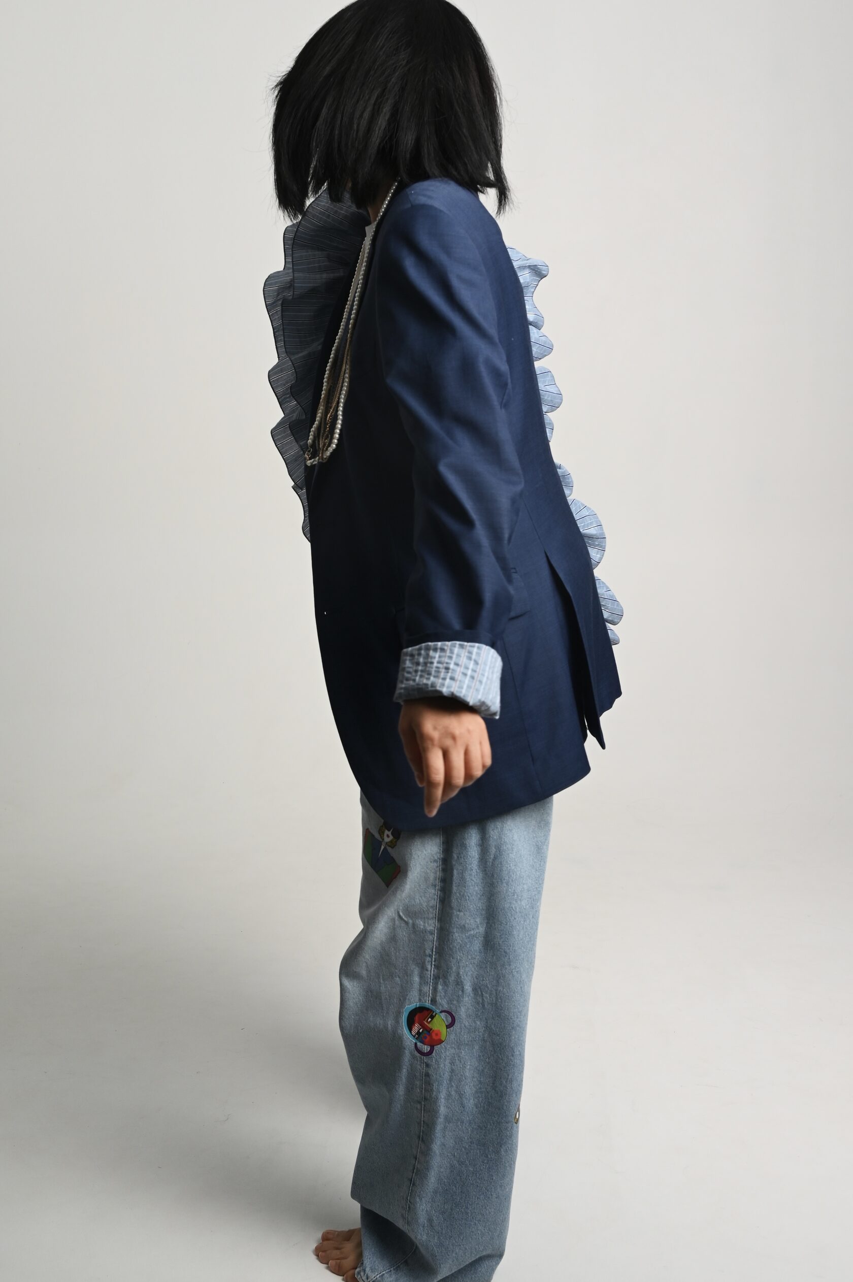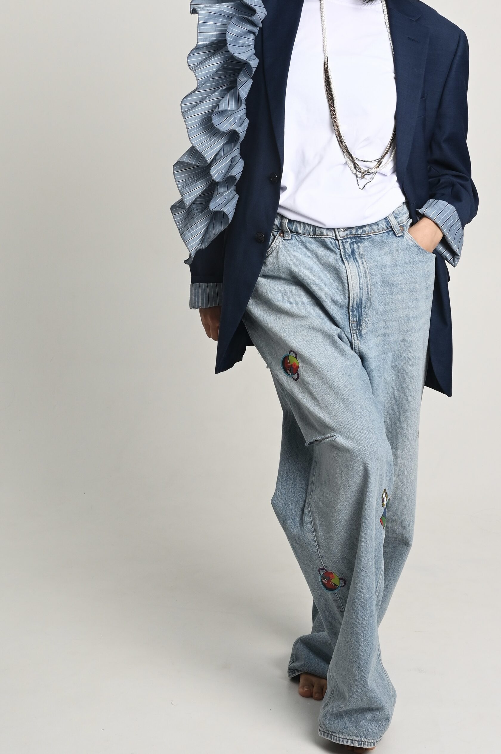 Пиджак проживает вторую жизнь, крой мужской, именно он придаёт тот объем и стиль, ты можешь сочетать его как с элегантным платьем, накинув его в прохладный день, и с любимыми рваными джинсами, надев футболку или топ. Когда ты захочешь насладится чашечкой ароматного кофе, и чтобы было удобно, подвернёшь рукав, ты насладишься безупречной подкладкой и возможно, так и оставишь - тебе понравится эта лёгкая небрежность и простота. Аппликация ! Она создаёт магический обряд, поговаривают автор вкладывает свой смысл и символику, в общем надо брать!